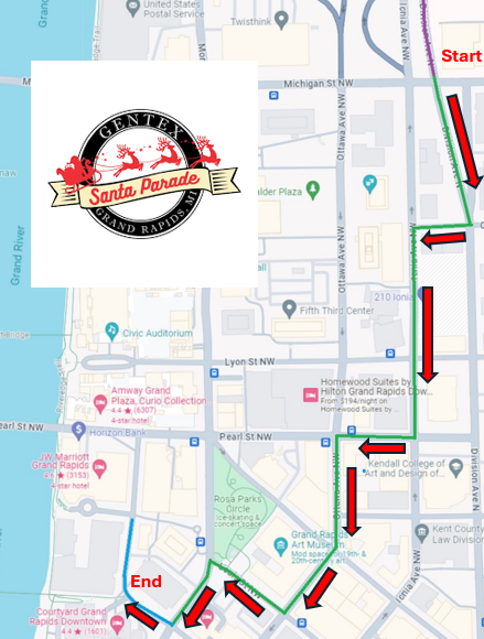 The parade line-up is set to start downtown Grand Rapids at Division Ave. N and Michigan St. NW. The parade will continue and end behind Rosa Parks Circle. We should be done by 6:30pm. Festivities are open to the public after the event at Rosa Parks Circle for the whole family.